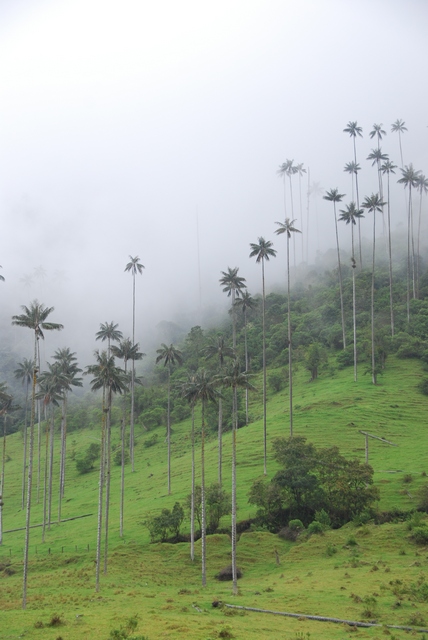 Zatrzymujemy się w dość popularnym turystycznym miejscu – Dolinie Cocora, porośniętej tysiącami cienkich, wysokich palm…
