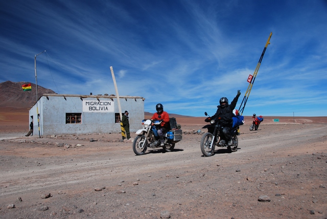 Pniemy się coraz wyżej. W końcu docieramy do boliwijskiej aduany – chyba najwyżej położona odprawa celna na świecie. W małym domiku na wysokości 5030 m.n.p.m. miły oficer wystawia nam bez żadnych problemów dokument tymczasowego importu motorów. Ciężko się oddycha. Trochę się kręci w głowie, słabość ogarnia.
