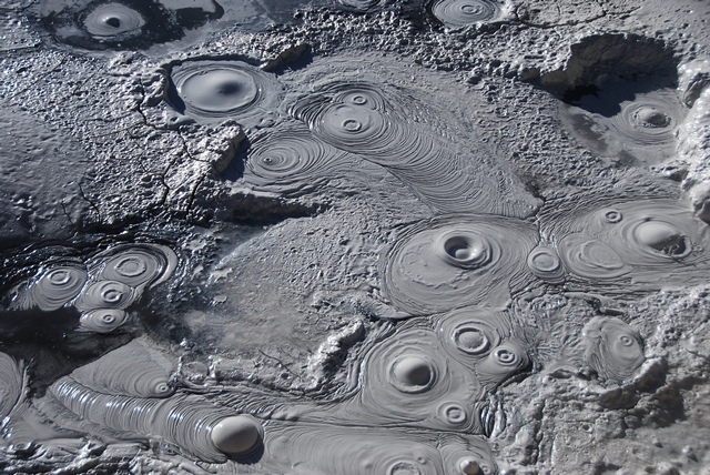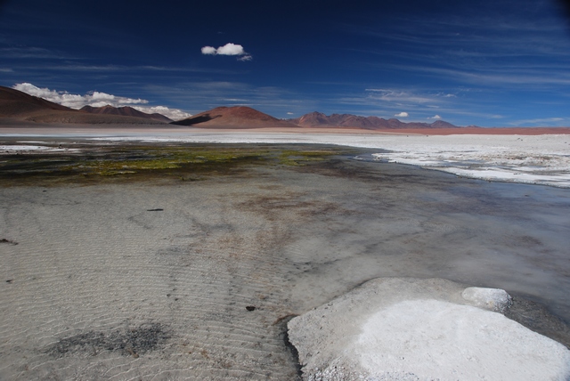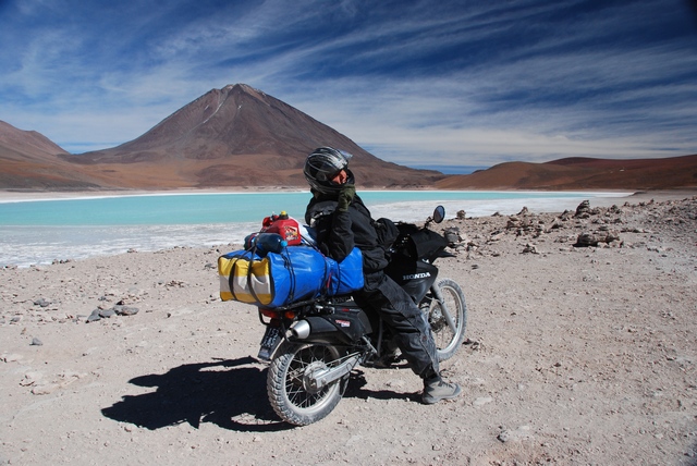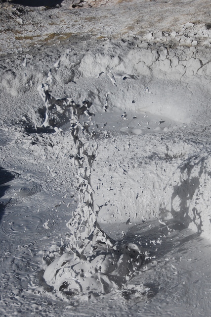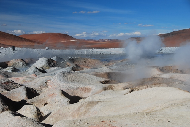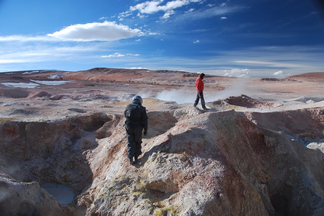 Zjeżdżając z aduany odbijamy do gejzerów, na które dostaliśmy namiar od pewnego brazylijskiego motorowca. Fantastyczne błotniste bąble bulgoczą w kolorowych basenach. Łazimy wśród oparów, zachwyceni, że trafiliśmy w takie wspaniałe miejsce…Nagle rozlega się dziwny warkot. To gejzer? Ach nie, to Landcruzer… I jeszcze jeden. I jeszcze. I jeszcze…W 5 minut przy naszych „dziewiczych” gejzerach zaroiło się od turystów ;-).