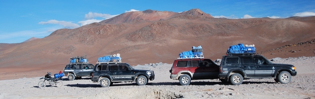 Nagle pojawił się pierwszy. Potem drugi. Potem trzeci. A potem przestaliśmy liczyć…Otóż naszą dziką, odludną trasę przemierzają codziennie dziesiątki Landcruiserów ze zorganizowanymi wycieczkami z Uyuni. Słyszeliśmy, że możemy je spotkać, ale nie wierzyliśmy, że będzie tego aż tyle…