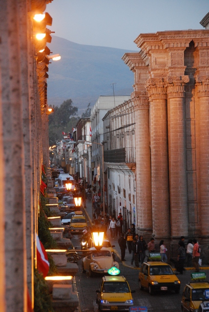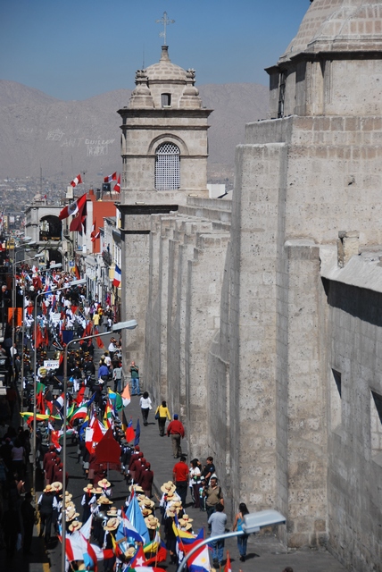 Arequipę wybudowano z białych wulkanicznych skał. W centrum przepiękne kolonialne kamienice i kościoły przywodzce na myśl bardziej południe Europy niż Peru, kawiarenki, wszystko czyściutkie i cywilizowane. Warkoczaste cholity zastąpiły wygarniturzone urzędniczki na obcasach. Niby ładniutko tu, ale jednak wolimy zwariowane La Paz.