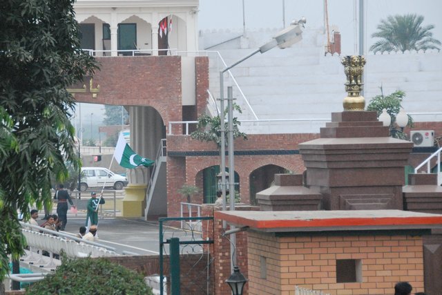 W końcu dojeżdżamy do przejścia. Po obu stronach granicy ustawione są trybuny dla publiczności. Po stronie indyjskiej zapełniają się stopniowo po brzegi, ale po pakistańskiej trochę pustawo.