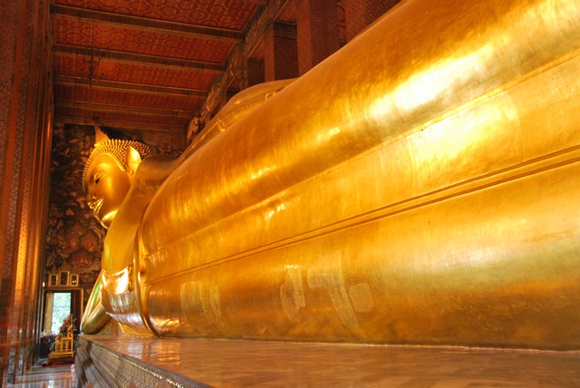 Zaliczamy po kolei obowiązkowe punkty programu: ociekający złotem Pałac Królewski, Szmaragdowego Buddę w Wat Pha Kaew (któremu sam król zmienia szaty wraz z nastaniem nowej pory roku), 45-metrowego leżącego Buddę w Wat Pho.