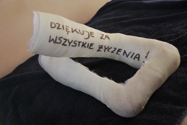 Nie obylo sie bez przygod, bo mistrzowie z peruwianskiego szpitala robiac kontrolny rentgen nie wcelowali w miejsce zlamania i fotke trzeba bylo powtorzyc. Ale najwazniejsze, ze Wasze zyczenia poskutkowaly bo noga sie zrosla ksiazkowo.