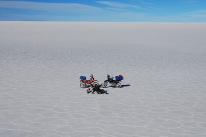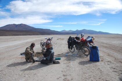 Wreszcie kończą się wertepy i zaczyna się słynny Salar Uyuni… Przy wjeździe na Salar siedzi Boliwijczyk i dłubie w swojej Jawie. Podjeżdżamy sprawdzić, co się stało. Guma. Spełniamy dobry uczynek, …