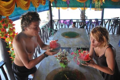 Na zakończenie kambodżańskiego urlopu mamie Bartka należy się trochę wody i piasku. Wracamy więc do Sihanoukville, żeby stamtąd przerzucić się na dwa-trzy dni na jakąś małą wyspę. Rozmawiamy z kim …