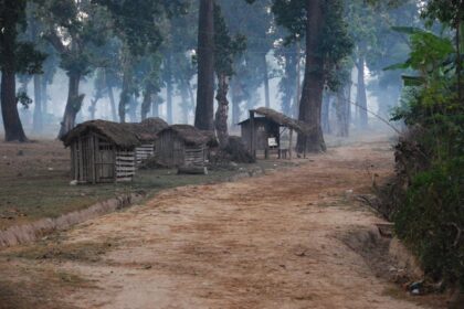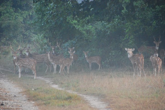 Do parku można wejść tylko z przewodnikiem. Chcieliśmy nocować w parku, ale nie wolno, więc mamy zamiar spać w namiotach tuż za rzeką Karnali wyznaczającą jego granicę. Wstajemy o świcie …