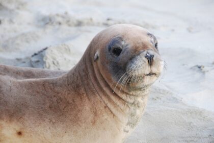 Spacerujemy plażą. Pod wydmą leży kłoda. Podchodzimy bliżej…to nie kłoda, to zdechła foka. Po głowie łażą jej muchy. Stoimy i się gapimy, aż tu znienacka zwierze szeroko ziewnęło. To nie …