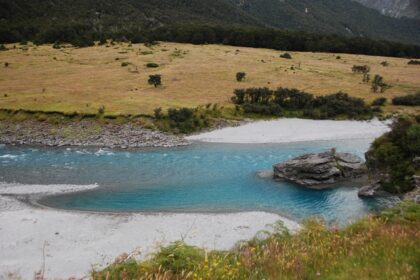 Druga co do wielkości góra w Nowej Zelandii, czyli Mt Aspiring (3033 m.n.p). Dookoła niej piękne szlaki. Tym razem mamy szczęście: słońce, ciepło i przede wszystkim poprzedniego dnia nie zalało …