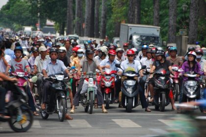 W Sajgonie są przede wszystkim motory. Całe ulice załadowane motorami. Z rzadka przemknie samochód osobowy albo ciężarówka. Jeżdżą wszyscy na trzy cztery, ignorując światła. Poza tym w Sajgonie jest kilka …