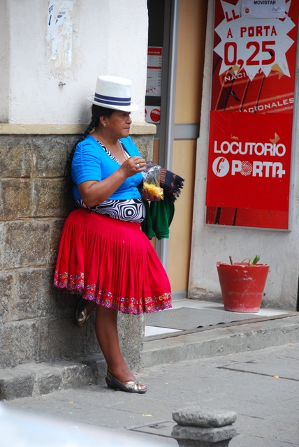 Mały postój w mieście Cuenca. Ładne, zadbane kolonialne kamienice, kościoły, ryneczki. Bogato, europejsko. Czasem przemknie ulicą tradycyjnie ubrana cholita, ale to już nie to, co w La Paz. W ogóle Ekwador nas zaskoczył swoim rozwojem. Spodziewaliśmy się większej egzotyki niż w Boliwii czy Peru, a tu niespodzianka. Cywilizacja, cywilizacja…