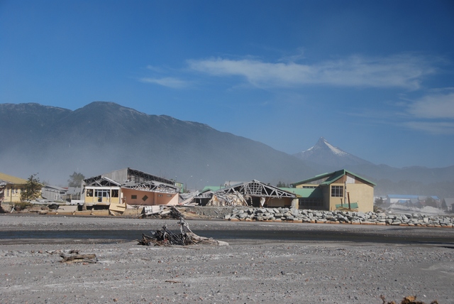 Dziś El Chaiten spopielało. W maju 2008 r wznoszące się nad miastem zielone, niepozorne wzgórze okazało się być czynnym wulkanem. Po jego wybuchu rzeka popiołu zakryła ulice, place zabaw, domy. Mieszkańcy, których wówczas ewakuowano, powrócili i próbują mozolnie odkopać miasto. Wulkan wciąż jest aktywny.