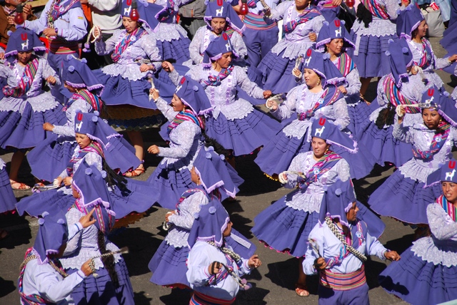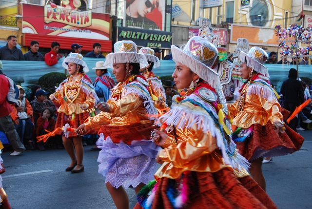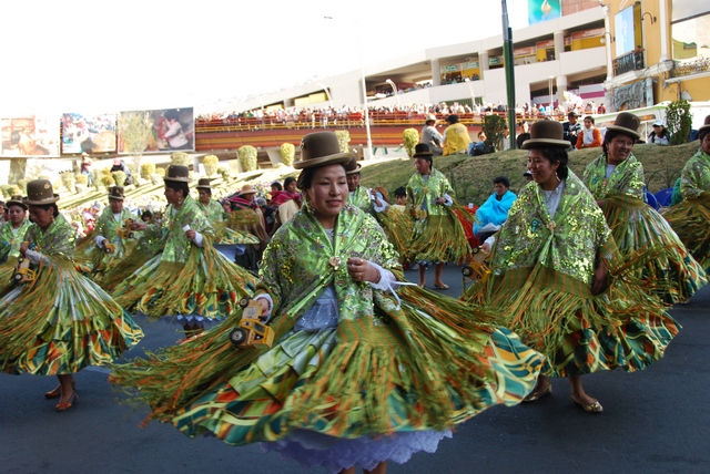 Fiesta, fiesta. Do La Paz zjechały reprezentacje uniwersytetów z najróżniejszych zakątków Boliwii, żeby cały dzień tańczyć na ulicach w corocznej paradzie Entrada Folklorica de Universitaria. Impreza trwa od rana do późnego wieczora, wstrzymano ruch samochodowy, miasto zwariowało.