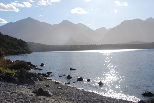 Jeszcze nas nogi nie przestały boleć po zejściu z Hump Ridge Track, ale wiatr wieje w tą stronę, w którą powinien i słońce nawet świeci, więc mimo że by się chętnie ponicnierobiło, wsiadamy na rowery i pedałujemy nad jezioro Manapouri.