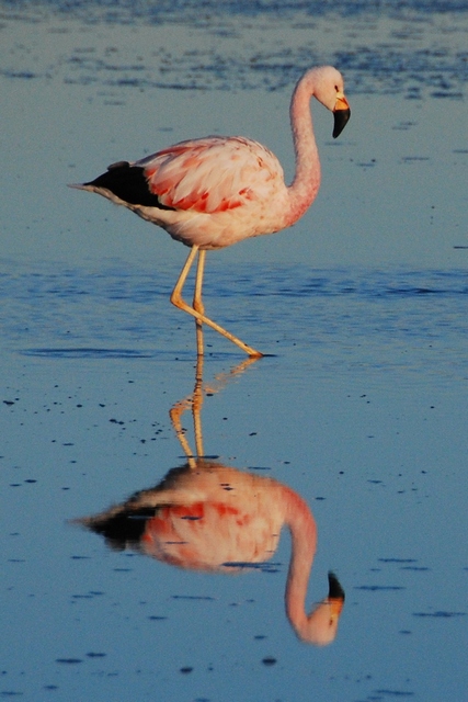 Rozbijamy namiot nieopodal laguny. Postanawiamy „pójść na flamingi” jeszcze raz o świcie. O 7 wschodzi słońce. Jesteśmy zmarznięci i zaspani, ale za to zupełnie sami. Plus stada ptaków. Niektóre jeszcze śpią na jednej nodze z głową wtuloną w skrzydła, inne zaczęły już śniadanie: człapią bez końca z dziobami zanurzonymi w słonej wodzie. Gdyby tylko było trochę cieplej ;-)