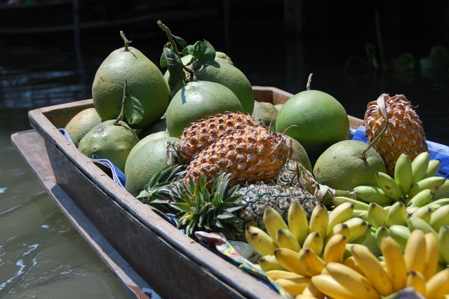 Wsiadamy na łódkę i wązkimi kanalikamii przebijamy się pomiędzy straganami i pływającymi sklepikami.