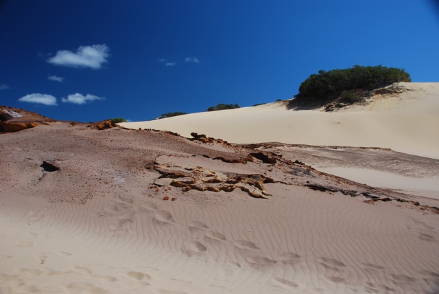Całe szczęście, że zdecydowaliśmy się przyjechać. Ludzie są, ale tylko w kilku najsławniejszych punktach. Od czasu do czasu przyjeżdża nawet autokar terenowy pt. „Fraser Island Adventure one day safari”. Wystarczy jednak odjechać kilometr dalej i wkoło cisza, spokój i wyspa cała dla nas. Na pieszych szlakach (bo okazuje się, że jest ich pełno i są świetne) żywej duszy.