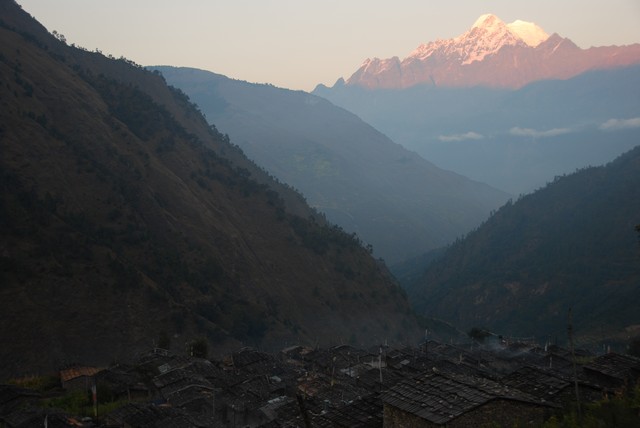 I zgodnie z tym założeniem po 5 dniach marszu zakładamy naszą pierwszą bazę we wsi Gatlang, na wysokości 2300 m, zamieszkałej przez lud Tamangów. Mają tu nawet gesthouse za 5 zł od osoby, tzn. materac z kocem w drewnianej chałupie, więc zaszaleliśmy, a co