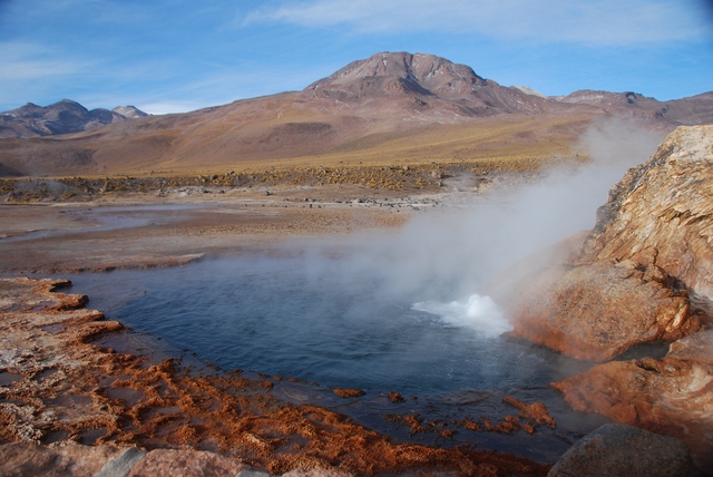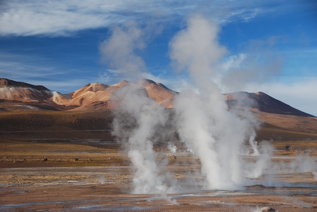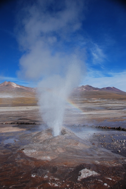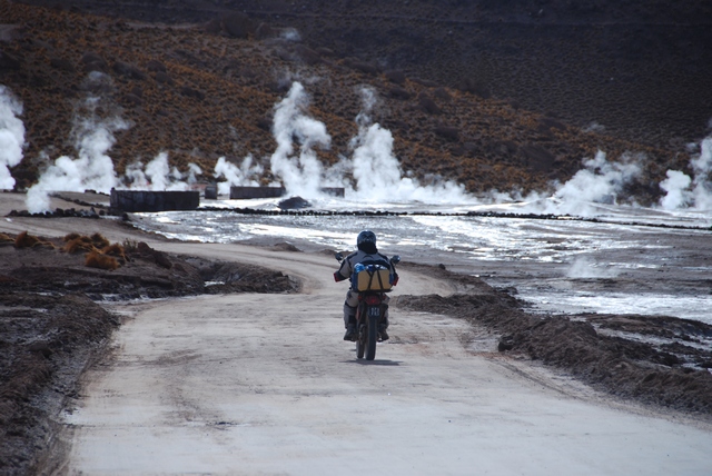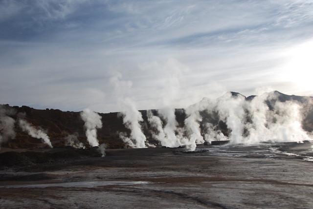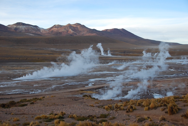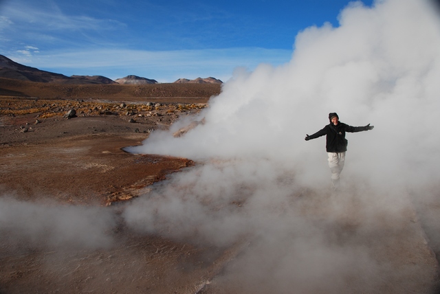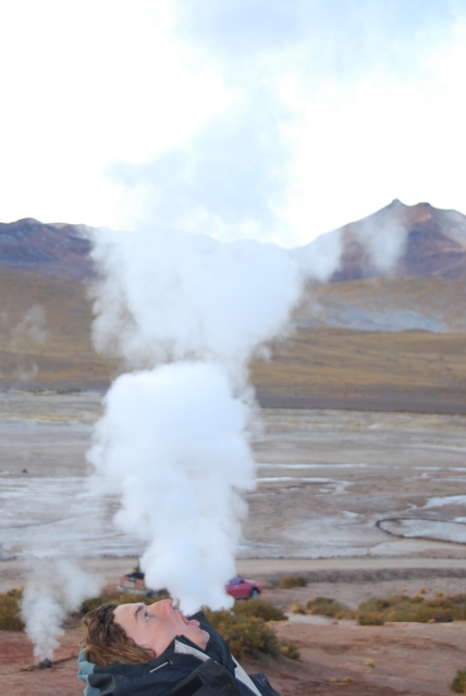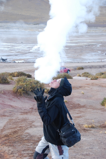 W południe podjeżdżamy do super atrakcji okolicy pt. Gejzery El Tatio, a tu dokoła żywej duszy. Pytamy strażników, czy to może nie sezon? Sezon, sezon, tylko turyści pojawiają się tu o 6 – 7 rano, kiedy gejzery wyglądaj najbardziej spektakularnie i po godzinie wszyscy odjeżdżają..