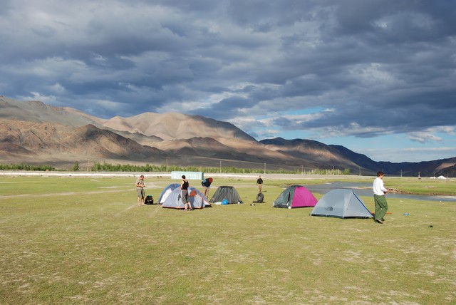 Motorniczy robi po drodze demonstrację umiejętności swoich i lazika, trochę dla nas, ale głównie dla jedynej mongolskiej pasażerki, której nie zostawiłi na granicy…Dogania nas uaz. Kierowca dodaje gazu.Jest wyścig, po szutrze, z zajeżdżaniem drogi. Trzęsie, telepie…jeszcze trochę…wygrywamy! Brawo! Po kilometrze nasz Kubica zatrzymuje się, wysiada, kładzie na trawie i demonsracyjnie czeka na rywala-frajera. A romans z pasażerką się rozwija, kierowca śpiewa…Do Olgy docieramy po zmroku. Jest 21 niezły czas na te 180km. Rozbijamy namioty nad rzeką. Idziemy spać.
