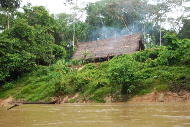Wsiadamy na łodkę. Jest już po południu. Dziś przepłyniemy tylko dwie godziny i zatrzymamy się na noc w wiosce Manuela Noneno. Wysiadamy na brzeg. Noneno jest dziwaczną mieszaniną tradycji i cywilizacji: murowana szkoła, na boisku meczyk piłki nożnej, drewniane domki, ale też i szałasy z paleniskami. Wiele osób zna odrobinę hiszpańskiego, co jakiś czas bywa w mieście zrobić zakupy. Ludzie niezbyt życzliwie nastawieni, mamy wrażenie, że trochę im zawadzamy. Siedzimy razem przy ognisku, ale nie proponują nic do jedzenia: nam w brzuchach burczy, bo od śniadania niczego nie mieliśmy w ustach. Wyraźnie jednak spóźniliśmy się na kolację. Trudno, zjemy ostatnią paczkę herbatników, która gdzieś tam się nam zaplątała w plecaku, nie chcemy się na dzień dobry narzucać.
