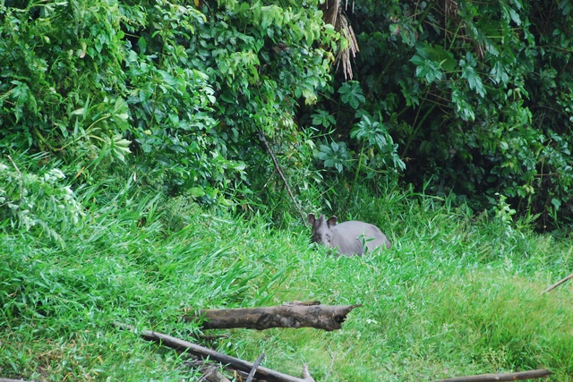 Jest wcześnie rano, a to dobra pora, żeby wypatrywać zwierząt. W wodzie żółwie i kajmany. Nad głowami latają kolorowe papugi, tukany, zimorodki i dziesiątki innych ptaków. Po drzewach skaczą małpy. Nagle na łódce poruszenie – tam, tam, na brzegu, patrzcie, tapir! Faktycznie – w krzakach wierci się duże, szare zwierze.
