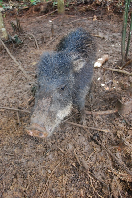 (dzika świnia, czeka na sznurku na swoją obiadową kolej)