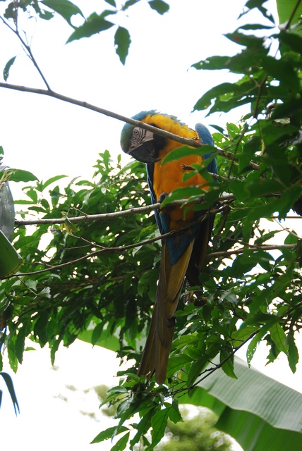 Rano idziemy do lasu. Bartek zabiera dmuchawkę, spróbujemy upolować coś więcej niż tylko banana. Słychać świergot na drzewie.