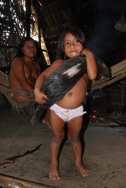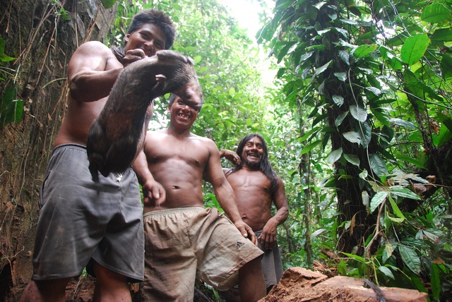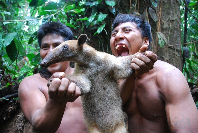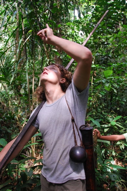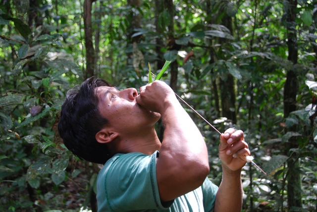 Do polowania służy długa dmuchawka. Mają też broń, ale ojciec woli tradycyjną dmuchawkę na małpy i ptaki.
