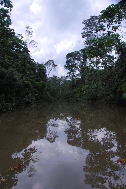 Następnego dnia o świcie ruszamy dalej: my, Otobo i jego dwaj bracia. Od dawna nie padało. Duszno i gorąco, temperatura przekracza 36°C. Łódka jest co prawda wygodna i nowoczesna, ale nie ma gdzie się schować przed palącym równikowym słońcem. Woda jest bardzo niska, a rzeka pokręcona jak kiełbaska. Co chwilę trzeba przepychać łódkę przez zwalone drzewa tarasujące przejazd, przez co płynie się strasznie wolno.