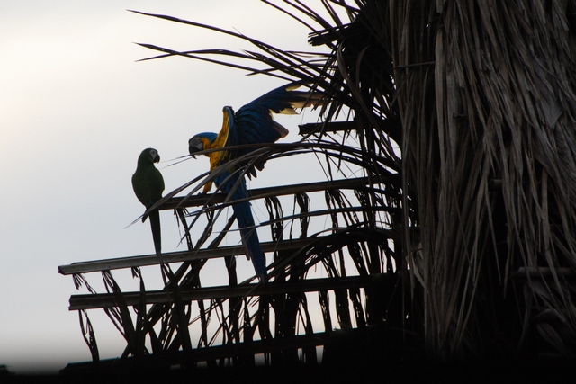 Wieczorem dopływamy do pojedynczego, pozbawionego bocznych ścian szałasu, w którym od lat mieszka samotna kobieta z mężem. U nich spędzimy noc. Obdarowujemy ich jajkami, ta uszczęśliwiona rewanżuje się kolacją z wędzonych piranii i gotowanej juki. Rozbijamy namiot w rogu szałasu. Już prawie przysypiamy, gdy nagle kobieta zaczyna śpiewać. Monotonne rytmiczne zwrotki w języku Huarani. Koncert trwa ze dwadzieścia minut. Może śpiewa dla męża, może dla nas, a może przywołuje deszcz – trudno stwierdzić. Faktem jest, że po godzinie rozszalała się burza. Selwę rozświetlają pioruny, wkoło huczą grzmoty, leje, leje, leje… Jak dobrze, że nad głową mamy palmowy dach…