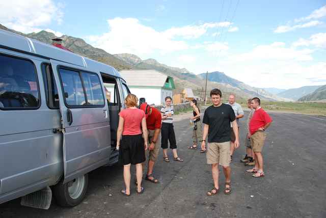 W Moskwie pędem na samolot do Barnaula, last call, jesteśmy na styk, uff, udało się. W Barnaulu jesteśmy o 6 rano (1 rano polskiego czasu). Zmęczeni, ale dzialamy dalej, żeby jak najszybciej dotrzeć do Mongolii. Łapiemy busa do Gornoautajska, stamtąd do przygranicznej Tashanty. Około 100 km od Tashanty widok w jednej sekundzie zmienia się: znikają góry porośnięte lasami i pojawia się marsjański krajobraz: puste, bezkresne stepy i wyrastajace z nich nagie góry. Dech zapiera (tym, co nie śpią:-). Dociereamy na miejsce wieczorem. Jak dotad coś podejrzanie dobrze nam idzie…No i się zaczyna się. Przez granicę dziś nie przejdziemy bo za póżno. Jutro też nie, bo jest Naadam. Pojutrze też nie, bo będzie niedziela. Spróbujcie w poniedzialek – radzi mily pagranicznik na rowerze. Dokujemy więc nad pobliską rzeką – ponoć dobra "rybałka". Sprawdzimy.