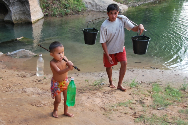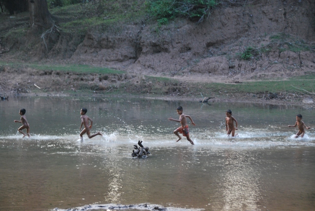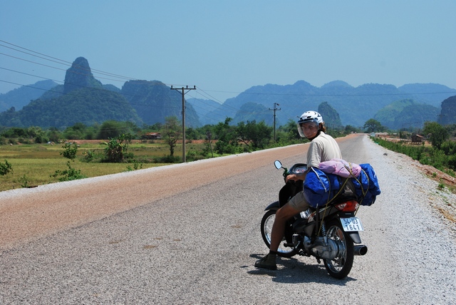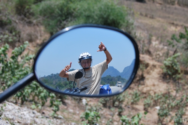 Po przeprawie przez drogę 23 cały dzień leżymy w hotelu i umieramy. Jedyna nasza aktywność to zakup laoklapek, gdyż bartkowe indyjskie obuwie pościgowe utonęło w jednym ze strumieni na drodze 23. Dopiero następnego dnia wsiadamy na motory. Chcemy dojechać do niedawno odkrytej jaskini Khoun Kong Lo – podobno wspaniała.
