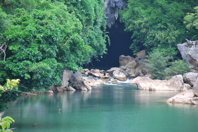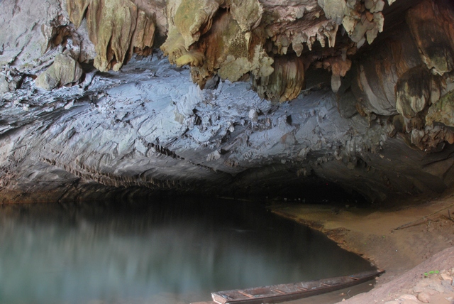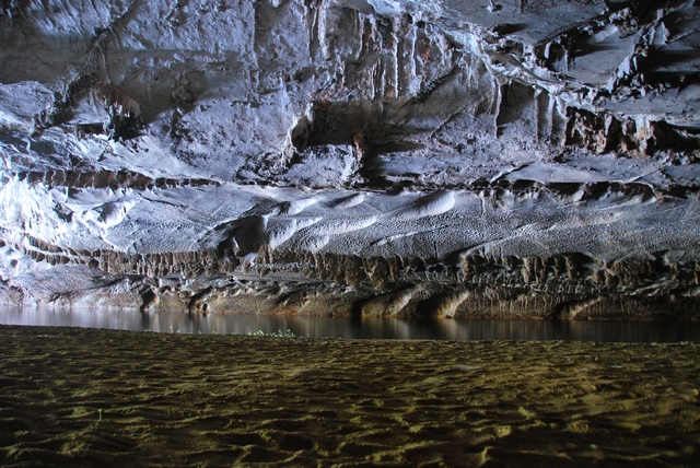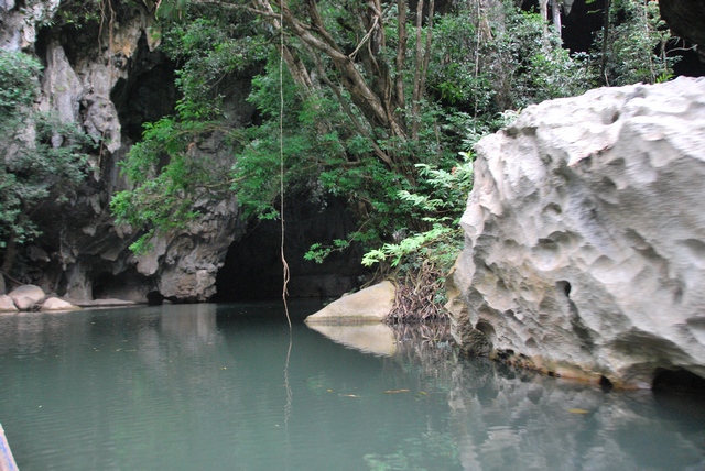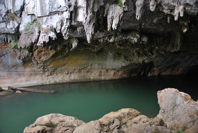 A sama jaskinia – obłęd. Czegoś takiego w życiu nie widzieliśmy. Rzeka wpływa pod kilkusetmetrową, pionową skałę i płynie przez nią ogromnym, podziemnym korytarzem przez…7 km!!! żeby wypłynąć po przeciwnej stronie. Przeprawa łódką na drugą stronę zajmuje prawie godzinę. Ciemności, tylko co pewien czas mijają nas czółna wypakowane lokalesami z towarem, kozami, krowami. Bo jaskinia jest przede wszystkim szlakiem transportowym pomiędzy oddzielonymi skałami wioskami. W powrotnej drodze nagle zatrzymują łódź. Ups…zgubiliśmy śrubę napędzającą łódkę..Chłopaki zaczynają poszukiwania: jeden nurkuje na dno jaskini po śrubę z lampą górniczą na czole, a drugi stoi na powierzchni i trzyma mu akumulator od tej lampy