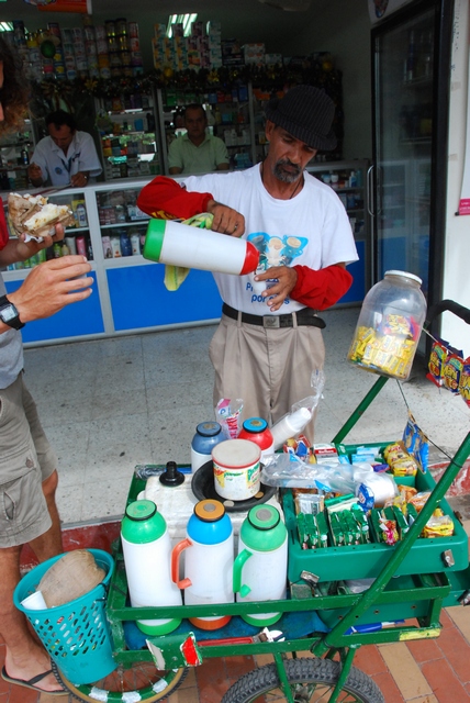 Kawa kolumbijska jest sławna na cały świat, ale ta najlepsza idzie na eksport. Zwykły Kolumbijczyk musi zadowolić się zwyczajną tinto (mała czarna, słodzona), sprzedawaną z ulicznych termosów w maciupkich plastikowych kubeczkach po 200 pesos. Jak masz ochotę na kawkę, wystarczy się rozejrzeć, na pewno ktoś toczy wózek z termosami w zasięgu twojej ręki…
