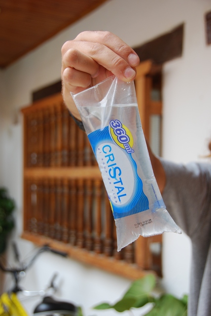 Potem trzeba popić wodą z małej przezroczystej torebki: nadgryzamy jeden rożek i gotowe… Tak, jak kiedyś oranżadki nad Bałtykiem :-)