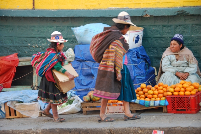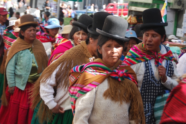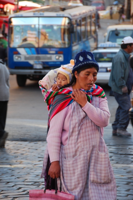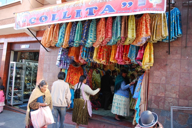 W La Paz niezaprzeczalnie i niepodzielnie królują tradycyjnie ubrane cholity. Na czubku głowy filuterny melonik, włosy splecione w dwa czarne złączone ze sobą na końcach warkocze, falbaniasta pstrokata spódnica, chusta z frędzlami. Zamiast torebki przewiązany na plecach kawałek wzorzystego materiału, do którego można zapakować wszystko: tak kartofle i pomidory jak i dzieciaka. Paradoksalnie strój ten wprowadzili w XVIII w. Hiszpanie, ale tak mocno zakorzenił się wśród miejscowej ludności, że stał się wizytówką kobiet z Altiplano.