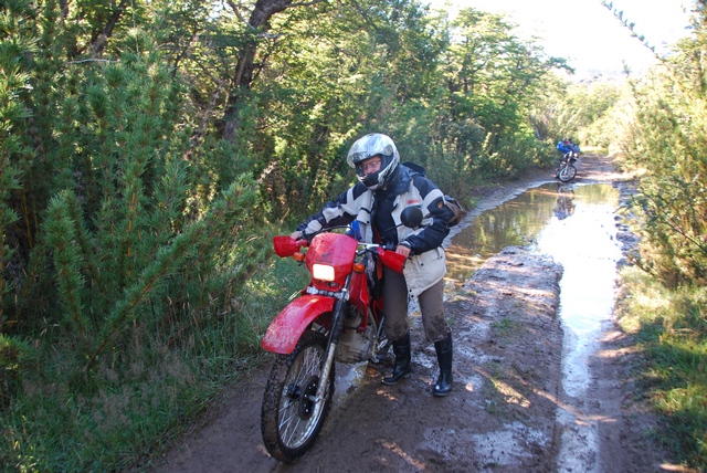 I tak w roli posłańców przekraczamy jeszcze kilka rzek i bajorek, zanim docieramy do drewnianej bramki dzielącej Argentynę i Chile, którą musimy sobie sami otworzyć. Po drodze zaliczam jeszcze wywrotkę w kałużę. Ciemna woda leje się ze mnie i z bagażu. I w tym opłakanym stanie przychodzi olśnienie… dziś jest Lany Poniedziałek!