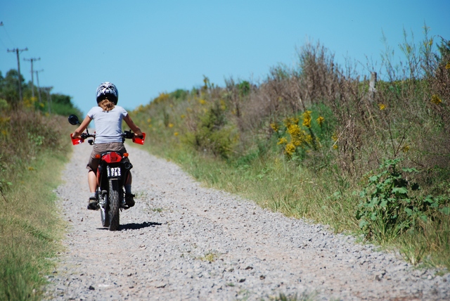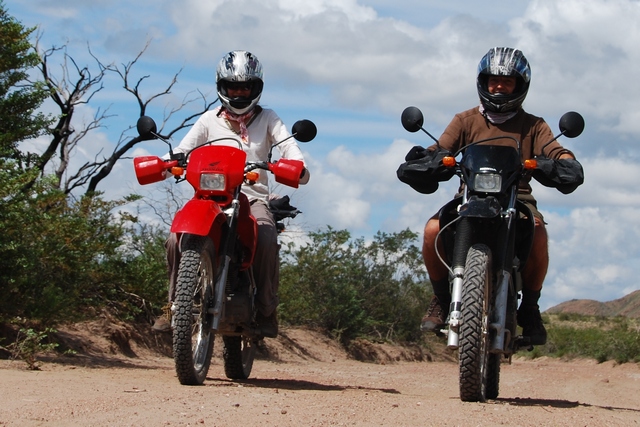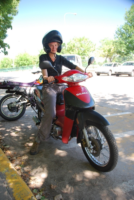 Jednym motorem jedziemy na kilkudniową wycieczkę w okolice Buenos. Uczę się używać moją nową maszynę. Duża jest. I ciężka. I ma sprzęgło. Ale po kilku próbach zaczynam łapać, o co w tym chodzi. Fajniej niż na wietnamskich motorkach! I po wertepach jeździ…aaa…cholera zgasła…aaa…bum na bok. Lusterko stłuczone, ale poza tym bez strat osobowo-sprzętowych.