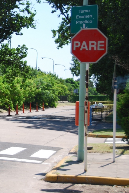 Po tej zabawie, która trwała może z godzinę, podbijają mi kwitek, każą wpłacić w okienku 30 pesos i przyjść następnego dnia na egzamin…Mam sobie ściągnąć z ich strony internetowej bank 200 łatwiutkich pytań po hiszpańsku, z których będzie składał się 30-punktowy test komputerowy i się tego nauczyć, a potem to już tylko zostanie łatwiutki test praktyczny. A na jakim motorze? No, na swoim. Ale ja przecież nie mam jeszcze motoru…Bo okazuje, że tu należy przyjechać na egzamin ze swoim własnym motorem. Miły pan obiecuje mi pożyczyć jutro swój motor. A jaki? 350cc…