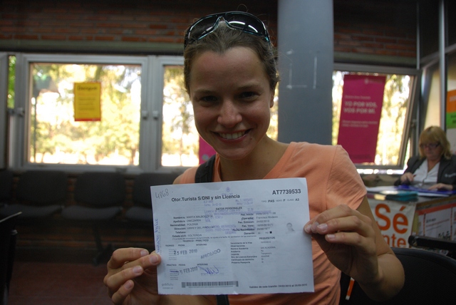 . Idziemy do okienka, gdzie po 15 minutach wydają mi …nie wierzę, że to się dzieje naprawdę…argentyńskie prawo jazdy!!! Jest terminowe, na 3 miesiące tak jak wiza, ale mogę potem podobno łatwo przedłużyć. I uprawnia mnie do jazdy na motocyklach o nieograniczonej pojemności.