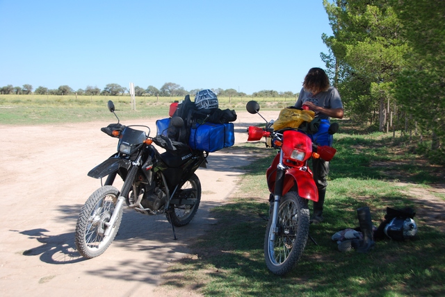 Następnego dnia po przylocie do Buenos zabieramy się za organizację przedsięwzięcia. Jakie motory kupić? Oczywiście takie, jakimi jeżdżą miejscowi. Czyli znowu będą Hondy, co nas bardzo cieszy. Dodatkowo powinny to być motory dobre nie tylko na drogi, ale też do jazdy po terenie różnym. Z Bartkiem sprawa jest prosta: po krótkim rekonesansie zapałał miłością do XR 250 Tornado. Ze mną sprawa jest trudniejsza. Tornado odpada, bo…nie dosięgam na nim nogami do ziemi. Jest jeszcze nieco mniejsza Honda Bross 125, z tym że to w zasadzie to samo co wietnamska Honda Wave w większym opakowaniu. Nagle niespodziewanie coś się pojawia: Honda XL 200. Dużo niższa od Tornado. Siadam sobie na niej na próbę i już wiem, że to opcja dla mnie. Sprawdzamy w Internecie co to za maszyna i okazuje się, że zebrała najlepsze oceny wśród…australijskich i afrykańskich farmerów. Wprost doskonała do zaganiania krów i owiec