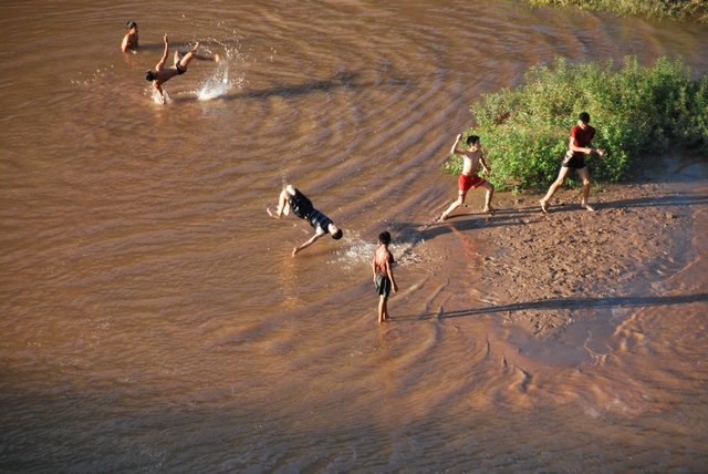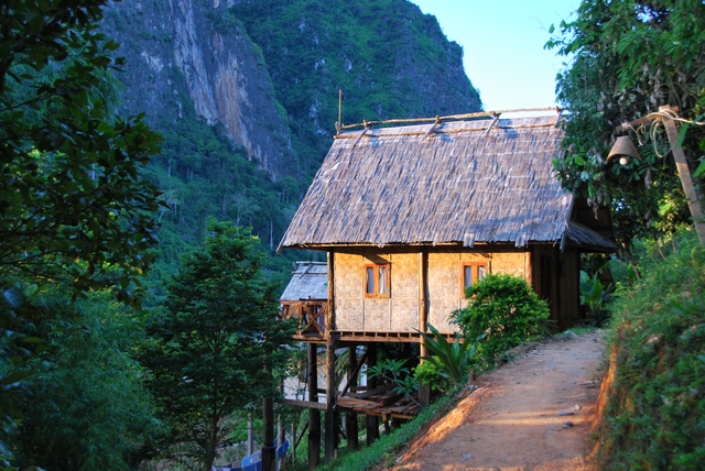 Jeden z kolejnych postojów robimy w miejscowości Nong Khiew. Przyjemnie tu. Sceneria jak w przeklamowanym Vang Viengu, sporo turystycznej infrastruktury, ale turyści nie zabili jeszcze tego miejsca. Są tu w dalszym ciągu gośćmi. I można zjeść rewelacyjne grilowane krewetki rzeczne – coś a la nasze raki, talerz za 3 dolary.