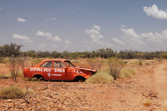 W jednym z mijanych miasteczek, w sklepiku z opalami dowiadujemy się, że jeśli odbijemy 120 km w boczną, szutrową drogę, to dotrzemy do Opaltonu, gdzie – jak sama nazwa wskazuje – grupa ok. 20 fanatyków poszukuje opali. Jeśli chcemy, to też możemy pojechać i sobie poszperać w ziemi, a nuż coś znajdziemy. Pan rysuje nam mapę operacyjną i poleca, żebyśmy odnaleźli w Opaltonie Deryla, bo to równy chłop i pokaże nam, gdzie kopać. Wynajmujemy w sklepiku za 10 dolarów młotek poszukiwacza i ruszamy po skarb.