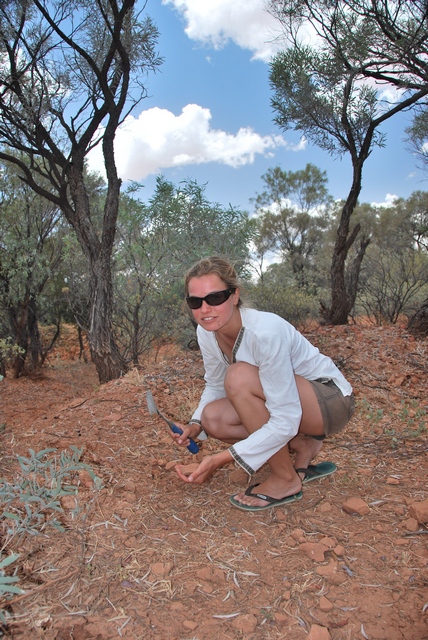 Kris uśmiecha się pobłażliwie, pokazuje nam różne kamienie, które po rozłupaniu świecą i – nie bójmy się tego słowa – opalizują! Okazuje się, że nie należy walić młotkiem w każdy kawałek skałki, ale tylko taki, który jest cięższy i ma takie charakterystyczne, nieregularne, bąbelkowate kształty.-„Skoro już wiecie, czego szukać, to pokażę wam teraz gdzie.” Jedziemy i zaczynamy szperać wśród kamieni. Kris z nami. Miał nam tylko pokazać miejsce, ale jak już zaczął łupać, to się wyraźnie wkręcił. -„Bo wiecie, czasem człowiek dostaje gorączki…”- tłumaczy.