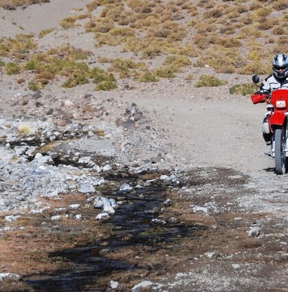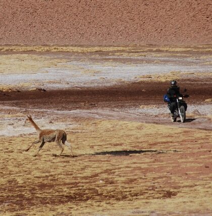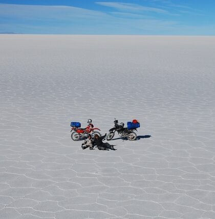 Jechaliśmy, jechaliśmy i wreszcie dojechaliśmy na legendarny Salar de Atacama. Motory zatankowane po brzegi, do tego po 4 litry benzyny w kanistrach i jeszcze na wszelki wypadek po 2 litry …