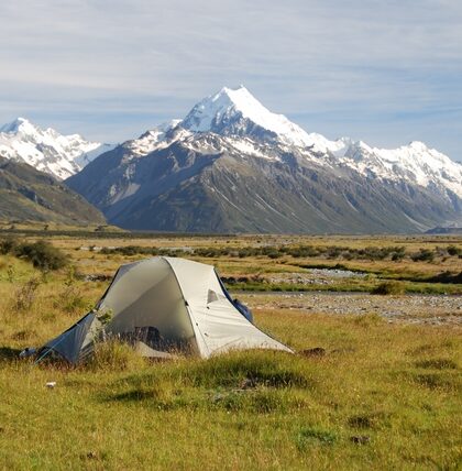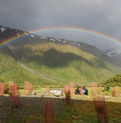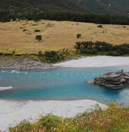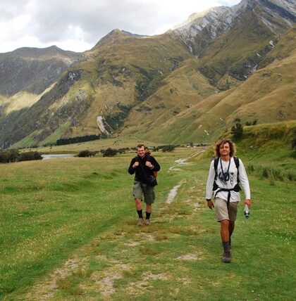 Druga co do wielkości góra w Nowej Zelandii, czyli Mt Aspiring (3033 m.n.p). Dookoła niej piękne szlaki. Tym razem mamy szczęście: słońce, ciepło i przede wszystkim poprzedniego dnia nie zalało …