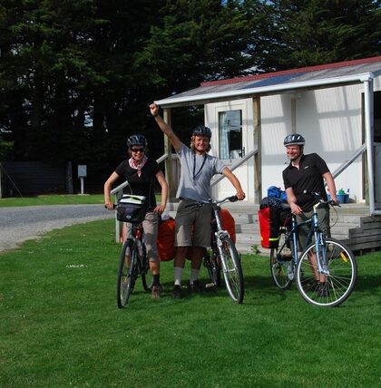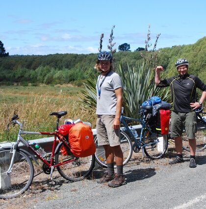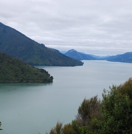 Oddajemy samochód, z powrotem wsiadamy na rowery. Jedziemy piękną drogą przez Malborough Sounds. Rejon słynie z zielonych muli, ponoć najlepsze na świecie. Po stromej wspinaczce zjeżdżamy na maleńki, uroczy camping …