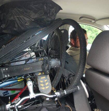 Zrobiliśmy kalkulację i wyszło nam, że nie ma szans, żebyśmy zdążyli objechać na rowerach wszystko, co zaplanowaliśmy. Po naradzie wojennej zapada decyzja: pożyczymy na parę dni samochód, obskoczymy nim kilka …