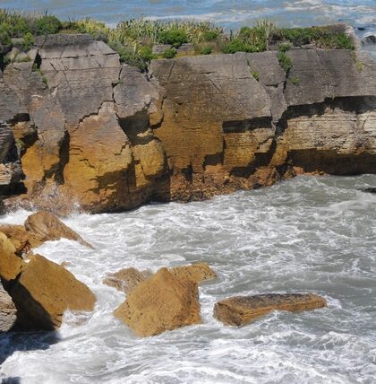 Wiart, deszcz i morze zrobiły ze skał naleśniki. Tak też nazwano te fantazyjne formacje z zachodniego wybrzeża: Pancake Rocks.